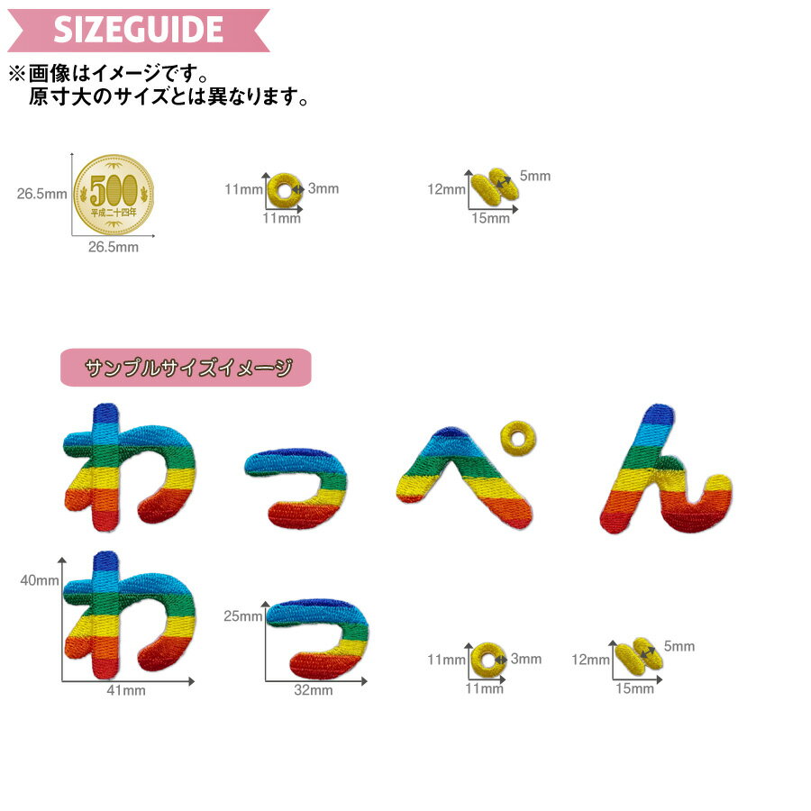 どれでも5枚以上で追跡可能メール便送料無料!゛ 濁点 ゜ 半濁点 アイロンで簡単貼り付け♪【ワッペン市場】ワッペン レインボー ひらがな 平仮名 だくてん はんだくてん アップリケ 刺繍 アイロン 手芸 おなまえ 名前 入園準備 保育園 幼稚園