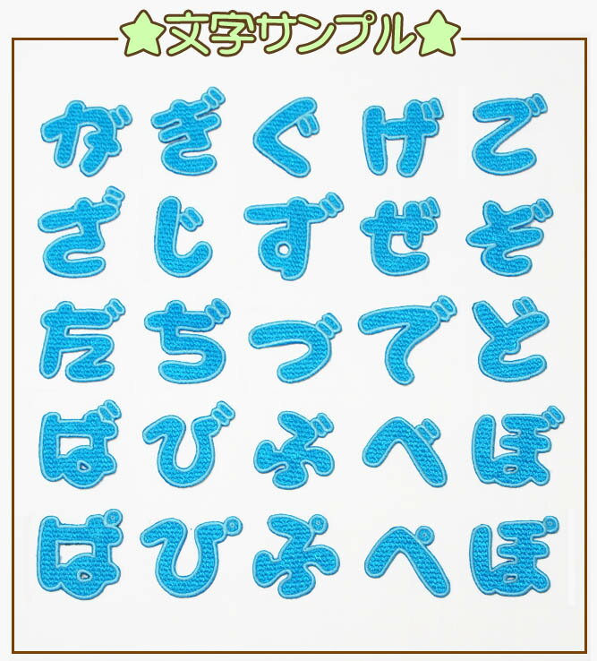 刺繍ひらがなワッペン 青色 (が行〜ぱ行) 縁取り刺繍 文字ワッペン アイロン接着