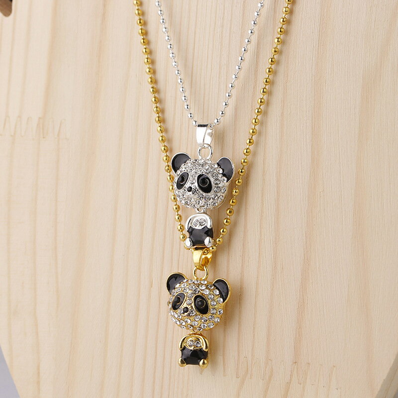 送料無料 ネックレス ペンダント ラインストーン パンダ レディース アクセサリー ジュエリー キラキラ チェーン おしゃれ 可愛い かわいい ガーリー 女性用 婦人用 記念日 誕生日 プレゼント 贈り物 ギフト ファッション 雑貨 小物 シルバーカラー