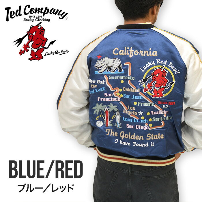 アメリカ西海岸のカリフォルニアをイメージしたグラフィック カリフォルニア州の州旗にも使われている カリフォルニアグリズリーが可愛らしい一品 ブランド:TEDMAN テッドマン 商品名:テッドマンリバーシブルスカジャン 品番:TSK-055 カラー:GOLD/NAVY、BLUE/RED サイズ:40(M)/ 42(L)/ 44(XL)/ 46(XXL) サイズ表 サイズ 着丈 身幅 袖丈 40M 56 57 84 42L 60 60 86 44XL 64 64 88 XXL 66 68 92 ・モニターの発色具合によって実際のものと色が異なる場合があります。